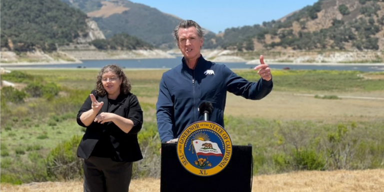 Governor Newsom discusses drought emergency response at Lopez Reservoir in San Luis Obispo County