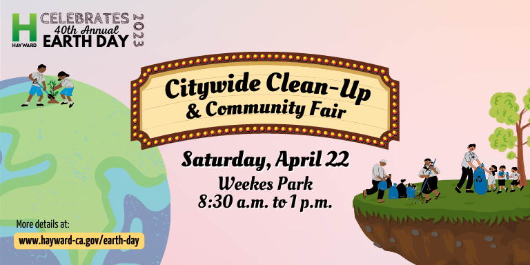 Join the City of Hayward and the Keep Hayward Clean and Green Taskforce in celebrating Earth Day 2023 by participating in the family-friendly Annual Citywide Clean-Up on Saturday, April 22 at Weekes Park.