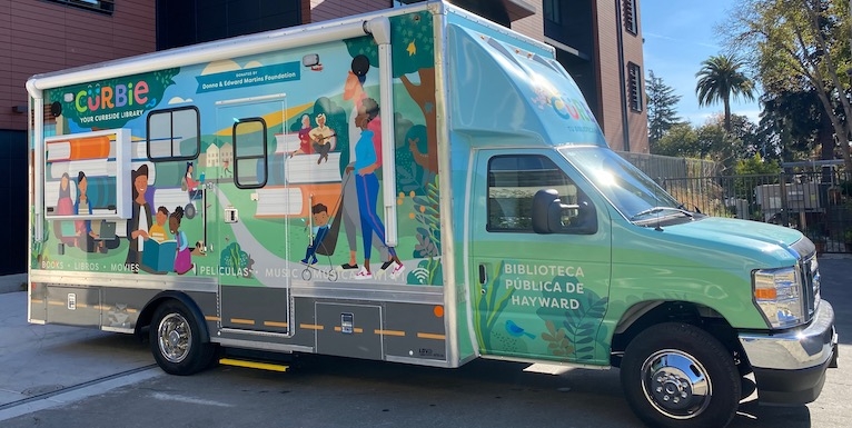 Curbie will travel year-round to locations throughout Hayward including schools, parks, senior centers, and neighborhoods. In addition to carrying books, audiobooks, music CDs, and movie DVDs for all ages, in multiple languages, Curbie will also bring a variety of programs and classes like staff-led storytimes, early childhood learn & play groups, book clubs, dance & movement programming, a seed lending library, gardening classes, and adult literacy outreach services, among others.