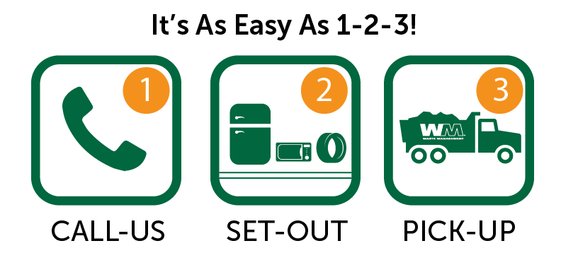Multi-family properties may schedule pickups for free through their property manager. Waste Management will bring a dumpster to the property for residents to use.